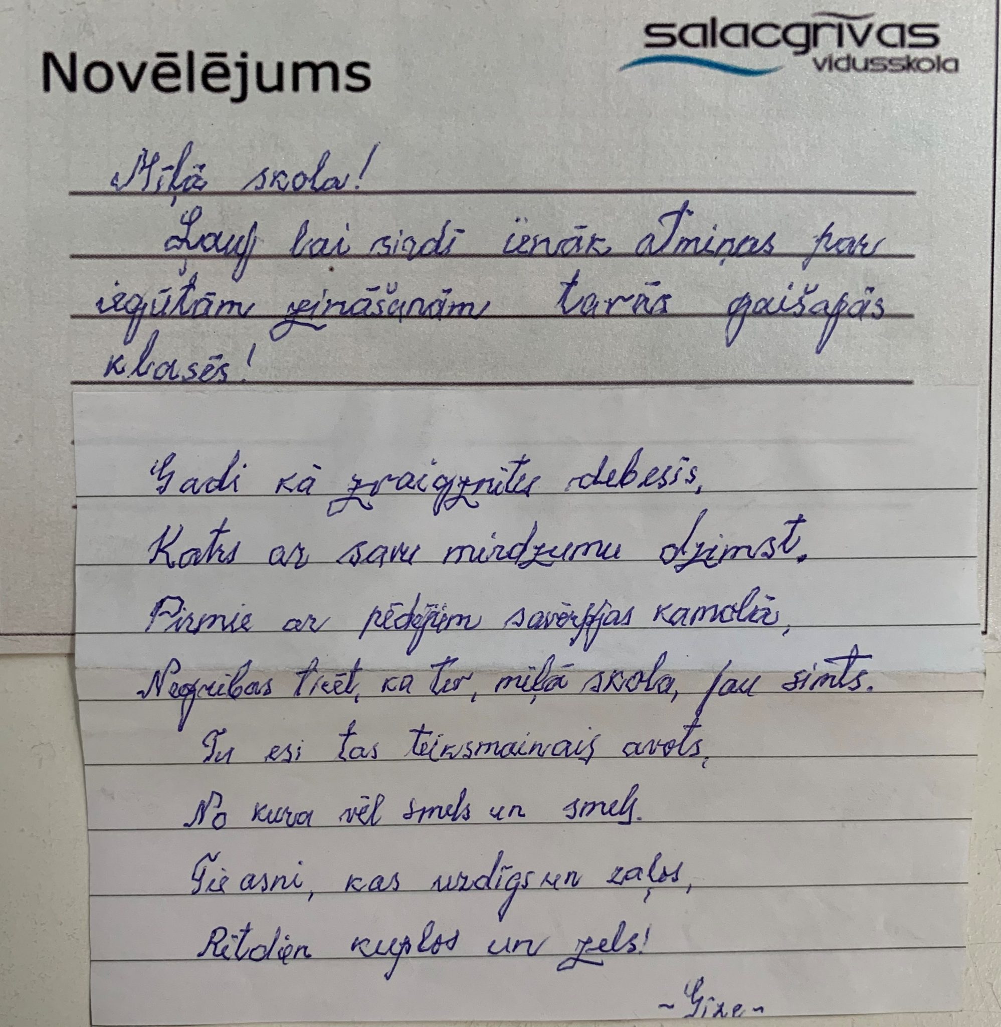 Latviskās rakstu zīmes iesūtīja visi, kas saistīti ar Salacgrīvas vidusskolu un vēlējās “tikt ieausti”. https://www.salacgrivasvsk.lv/salacgrivas-vidusskolai-100-2/