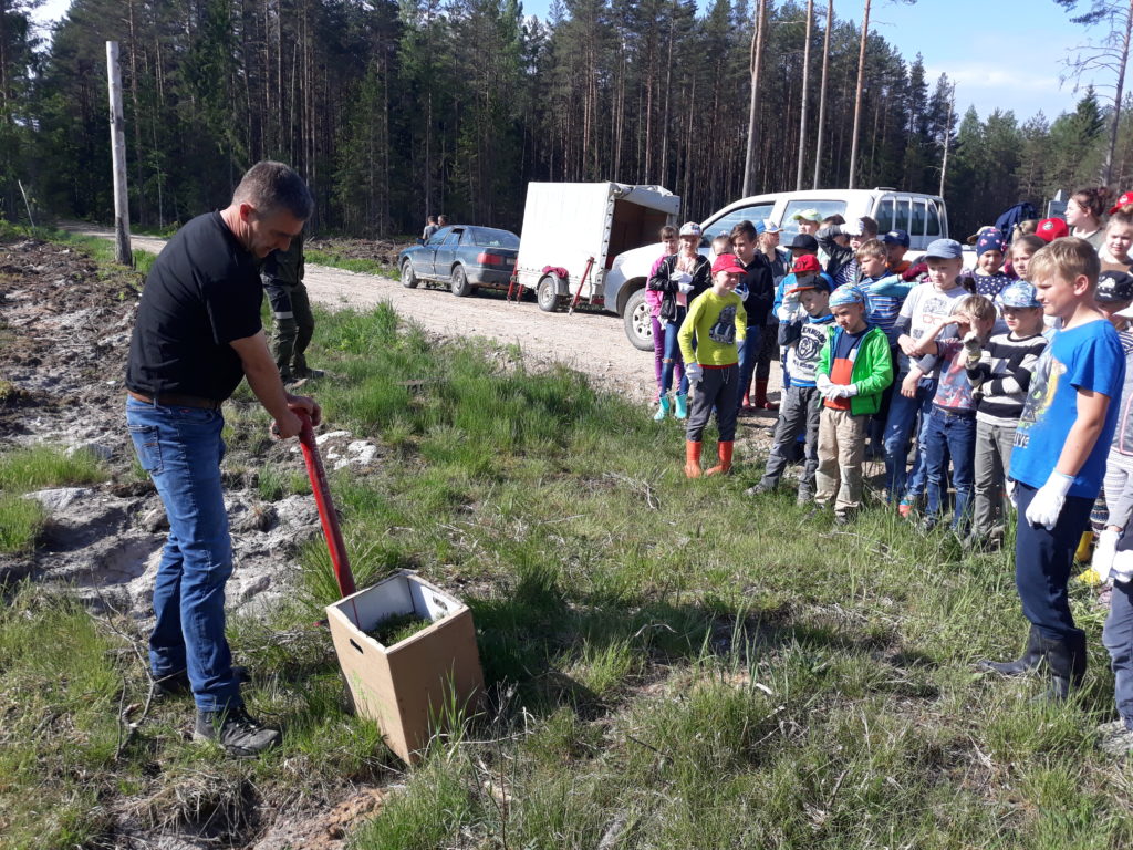 Arī šogad devāmies uz Dižozolu, kur Igaunijas pierobežā visus jau gaidīja meža strādnieki. Liels padomdevējs skolēniem bija arī mežkopības meistars Valdis Rutkaste. Daudzi meža stādīšanā piedalījās pirmo reizi, bet daži jau to darīja atkārtoti un varēja pamācīt mazākos.
