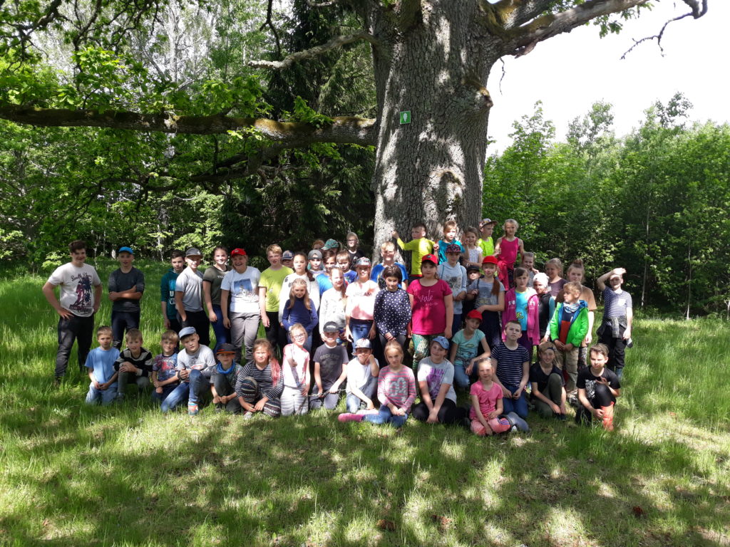 Pēc tam visi mežkopības meistara Valda Rutkastes pavadībā devās uz Dižozolu, lai atpūtas vietā kopā ieturētu maltīti un mazliet atpūstos no karstās saules. Gandarījums par paveikto neviltots. Lai aug mūsu iestādītais mežs un meistarība vides izglītībā!