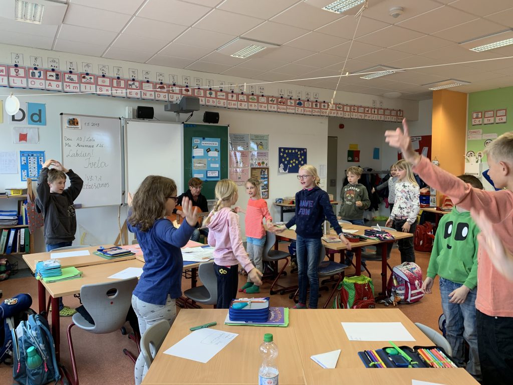 Tikmēr es, Iveta Kupča, devos ciemos pie sākumskolēniem, jo esmu sākumskolas skolotāja. Tiku draudzīgi uzņemta 3. klasē, kurā mācījās arī bērni no Anglijas, Ukrainas un Horvātijas. Iemācīju skolēniem “Labdien” un “Uz redzēšanos” – cik šis bija grūts vārds! Noskaidrojām, cik tālu ir Latvija, ātrākie to sameklēja atlantā. Nodarbības (tika prezentēti grupu darbiņi par vali) izskaņā skolēni kopā ar skolotāju nodziedāja skaistu dziesmiņu ar kustībām. Un secināju, ka mēs sākumskolā strādājam līdzīgi.
