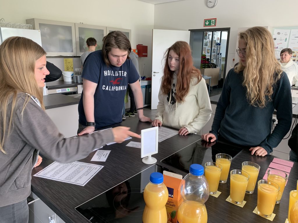 Patērētāju zinībās skolēni pētīja saldināto dzērienu sastāvu – aktuāla tēma visā pasaulē, gatavoja paši ledus tēju, rēķināja cik cukurgraudi ir dzērienā “Coca-cola”, testēja dažādas apelsīnu sulas, bet mēs – skolotājas – trenējām vācu valodas zināšanas, atpazīstot dažādus dārzeņus, saliekot tos kopā ar attēliem, atbildot uz jautājumiem par veselīgu ēšanu.