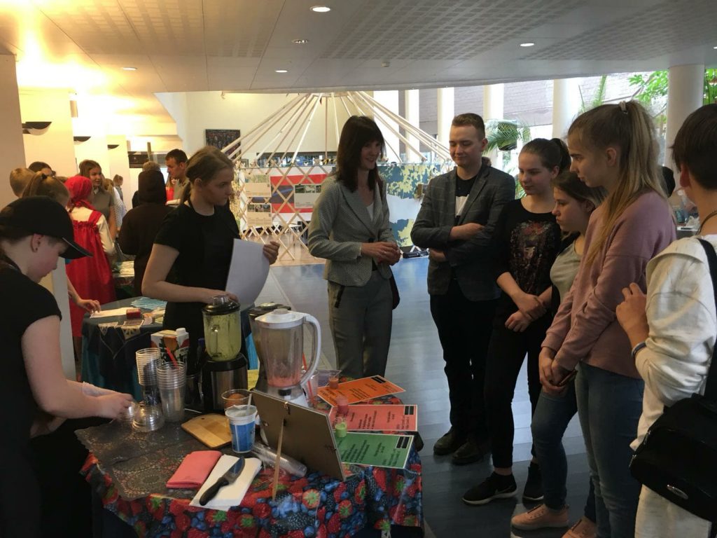 Apskatot tirdzniecības stendus, jaunieši savā starpā brīvi komunicēja angļu valodā, uzdodot sev interesējošus jautājumus, uz kuriem labprāt un ļoti ieinteresēti atbildēja ražotāji, tirgotāji, pakalpojumu sniedzēji no dažādām Igaunijas skolām – Tallinas, Pērnavas, Viljandi, Valgas un citām.