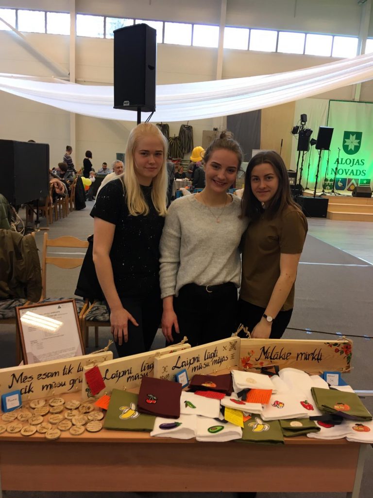 SMU TRIOMEL skolnieces Elīna Gertnere, Monta Mieze un Linda Ivanova Latvijas skolēnu mācību uzņēmumu reģionālajā pasākumā “CITS BAZĀRS” Alojā saņēma pateicības rakstu un apbalvojumu nominācijā “Ekoloģiskākais uzņēmums”!