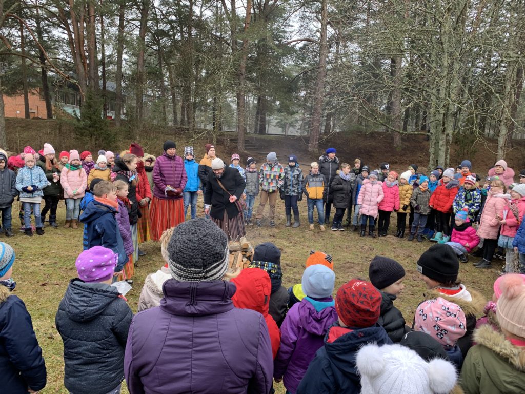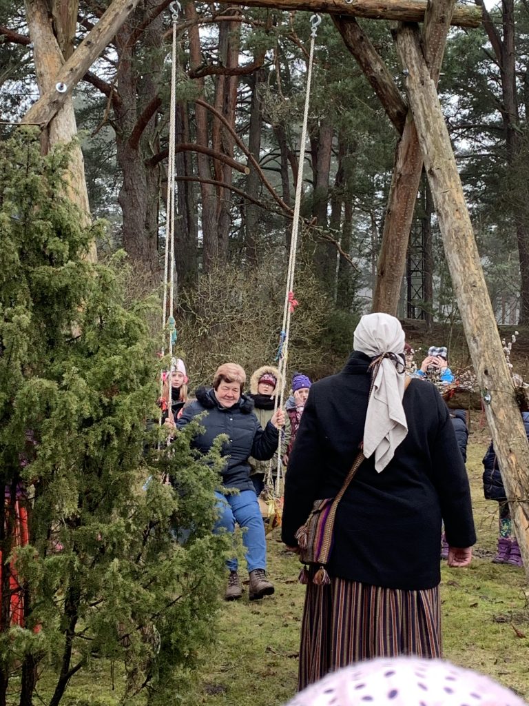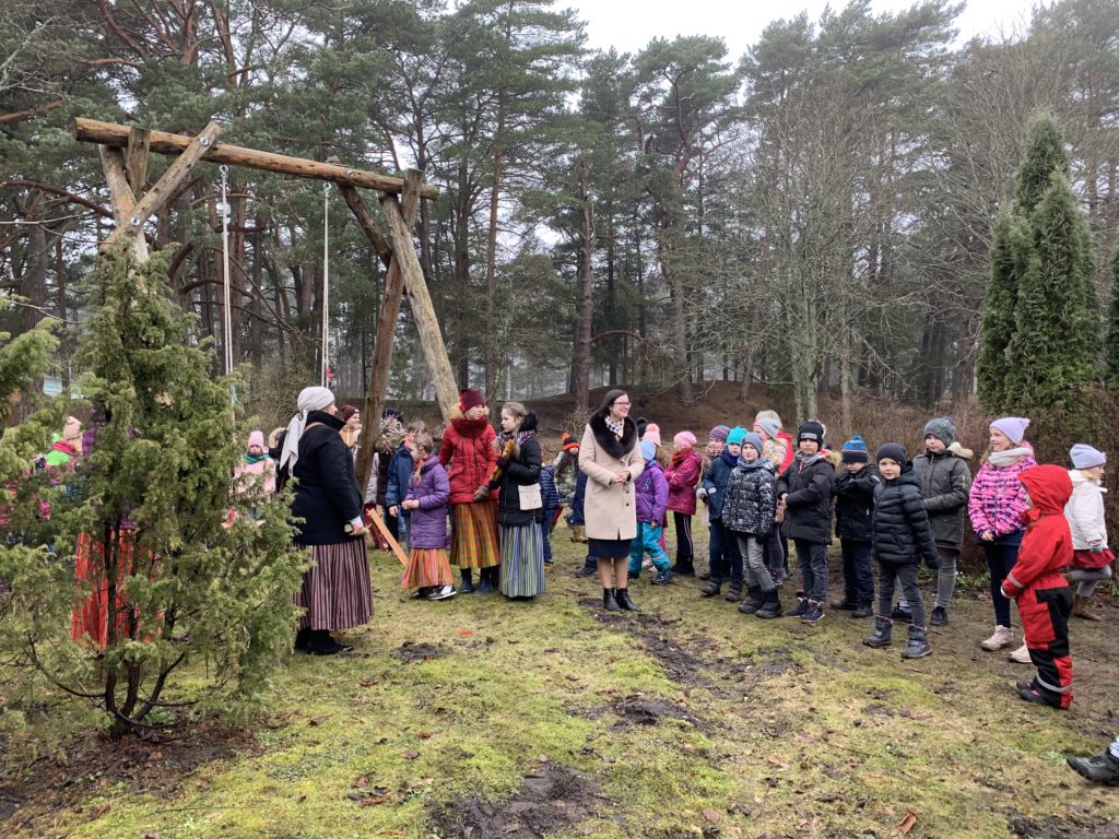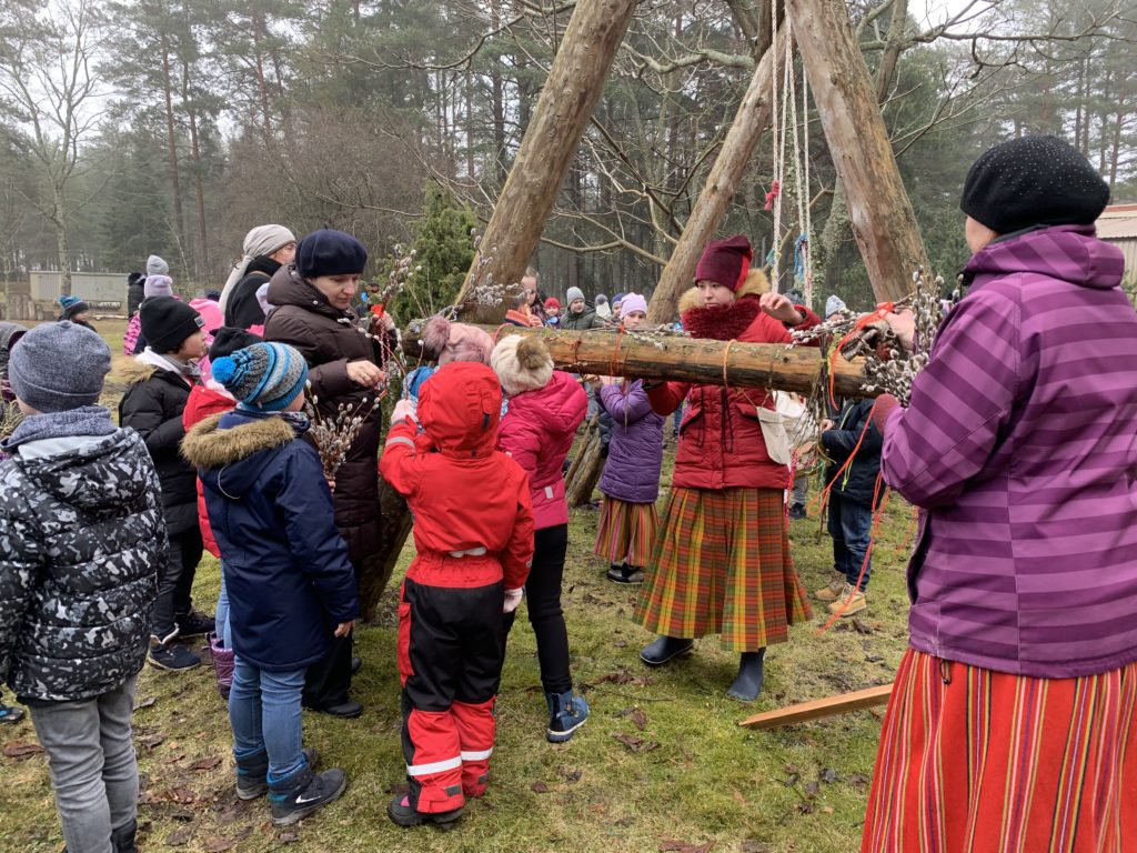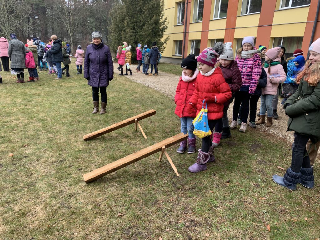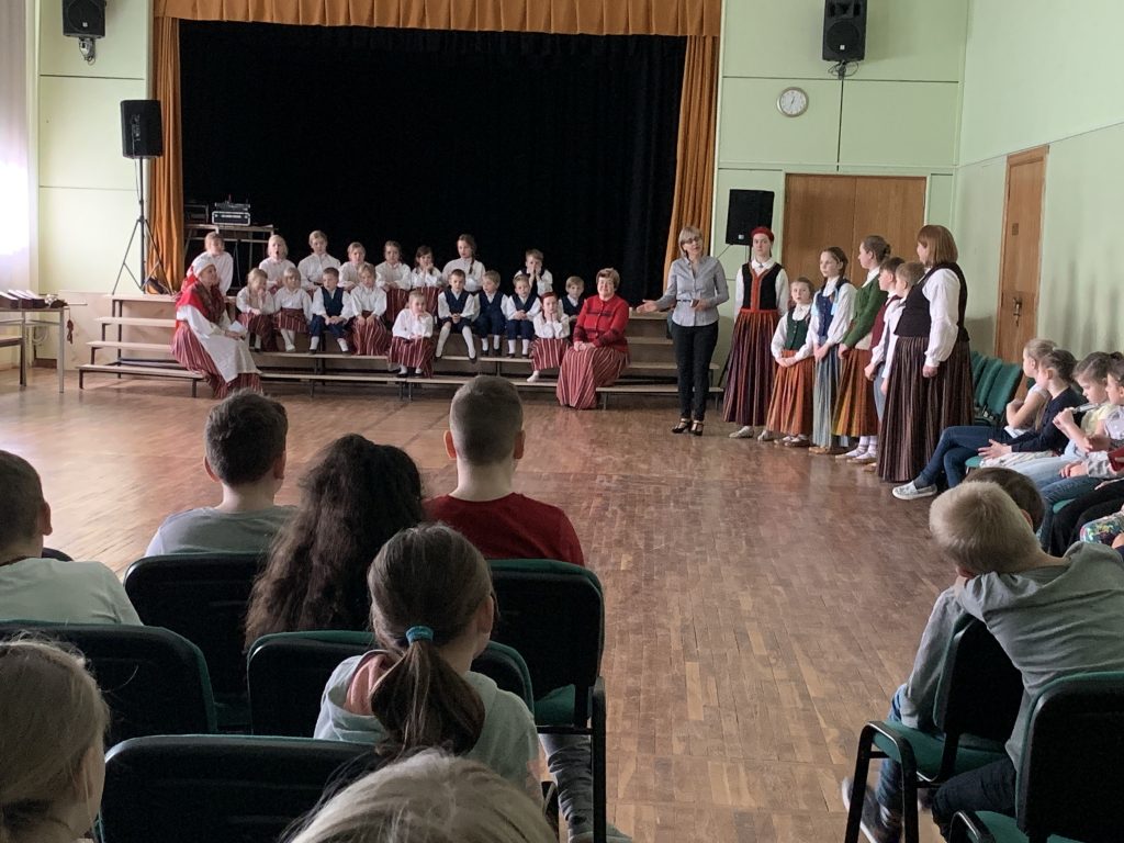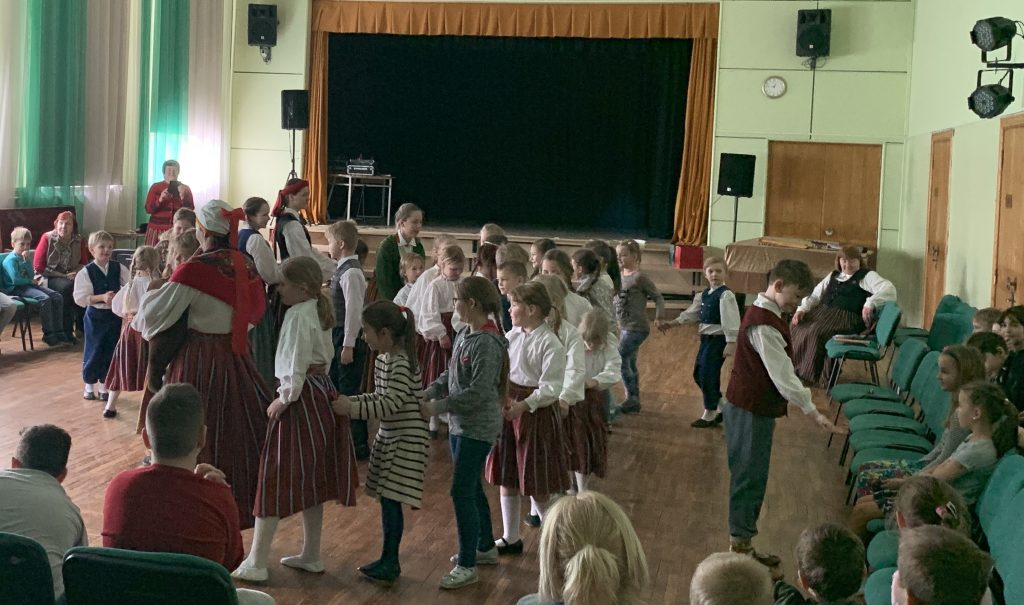 Šo dienu kopā ar mums svinēja folkloras kopas “Zēģelīte” sadraudzības partneri no Igaunijas. Tādēļ šūpolēs sēdinājām igauņu skolēnu skolotāju 🙂