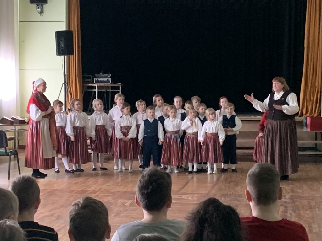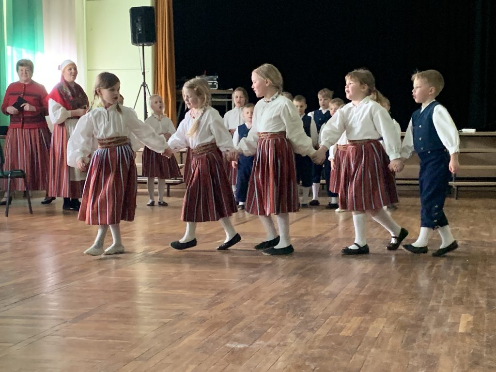 Kad svētku rituāli veikti – laiks saviesīgai daļai. Uz koncertu mūs aicināja igauņu skolēnu folkloras kopa.