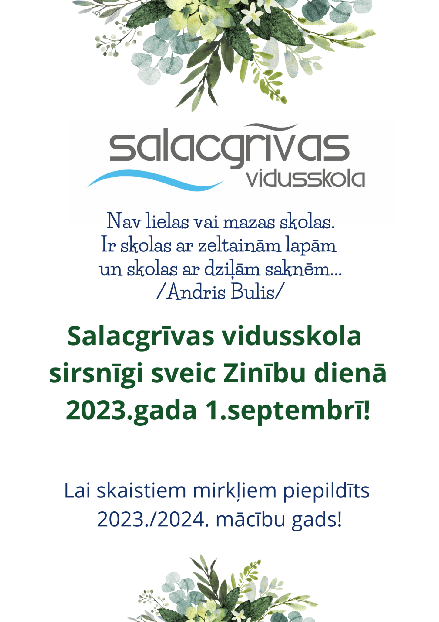 Salacgrīvas vidusskola sirsnīgi sveic Zinību dienā 2023.gada 1.septembrī!