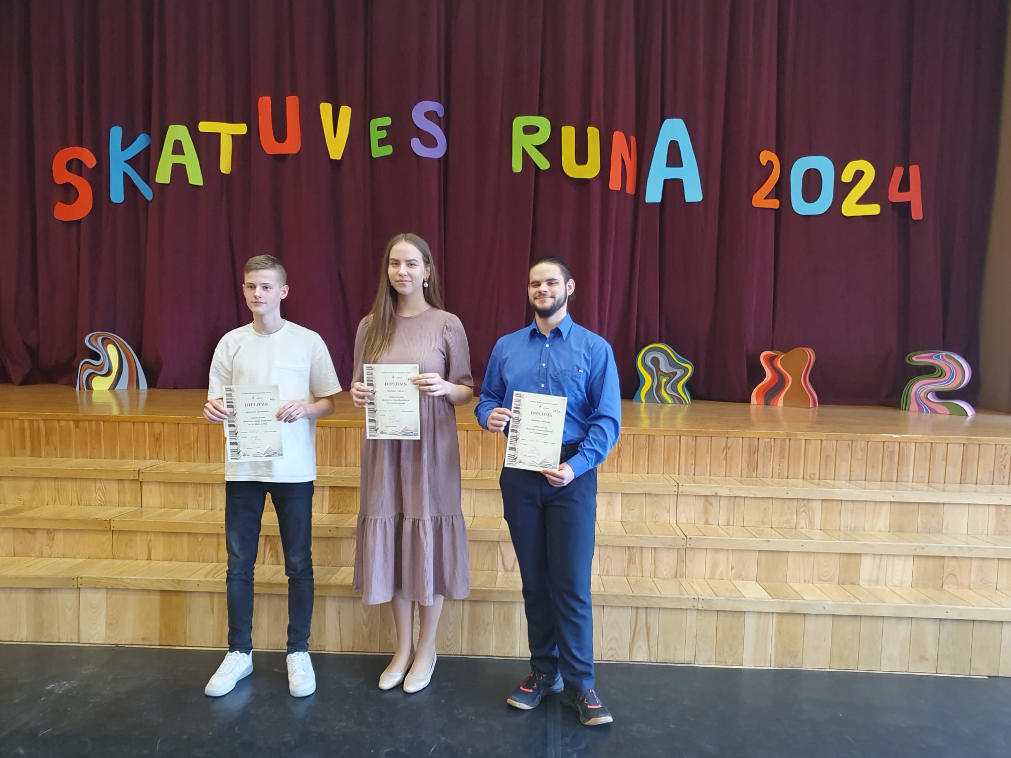 II pakāpes diploms – Grētai Grāverei (1.b), Reinim Ādamsonam (1.a) un Rojam Treimanim (3.a).