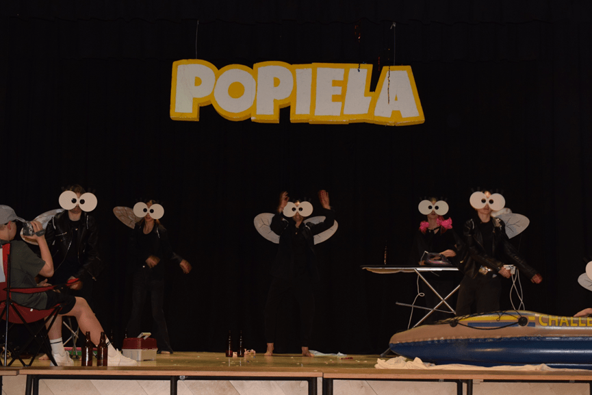 To nu nevar nepamanīt, ka visa skola gatavojas Popielai! Skan mūzika, skraida satraukti skolēni, strīdās, kurš sajaucis mēģinājumu grafiku, pārvieto dīvainas lietas… neviens cits pasākums nerada tik daudz emociju.