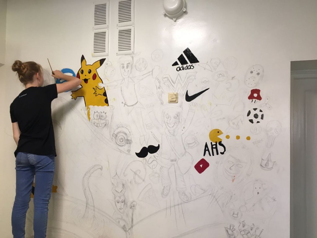 Ar nākošo nedēļu sākās darbs ar krāsām. Pirmo dažu dienu darbs bija haotisks, zīmēšana ievilkās un „negāja uz priekšu”. Pēc pirmās nedēļas darba siena nebija pat pusē un mums vienas nedēļas laikā bija jāpabeidz viss atlikušais darbs. Lai paspētu visu izdarīt, mēs pie šī darba strādājām neskaitāmas stundas. Tuvojās nedēļas beigas un 20.augustā mēs uz sienas uzlikām savus parakstus.