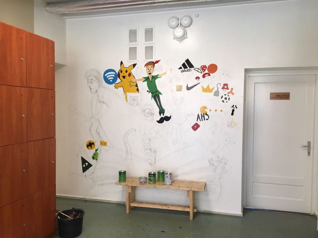 Kad devāmies uz skolu gūt apstiprinājumu turpināt darbu, tika norunāts, ka siena tiks pārkrāsota balta un darbu varēs sākt, līdzko tiks nopirktas krāsas. 2.augusta rītā devāmies uz būvniecības veikalu „Acteks” iegādāties nepieciešamos materiālus krāsošanai. Visu atlikušo nedēļu veltījām skices pārzīmēšanai uz sienas.