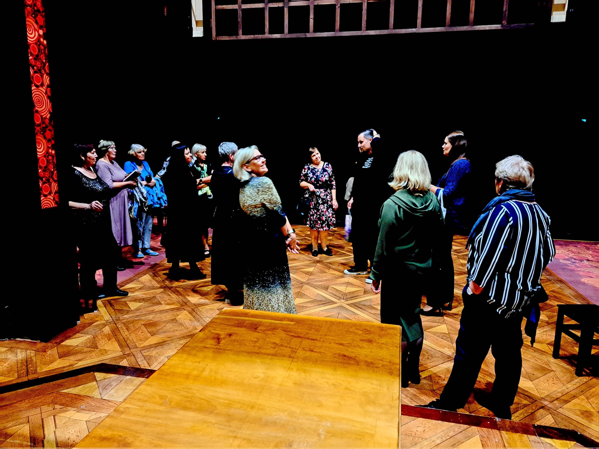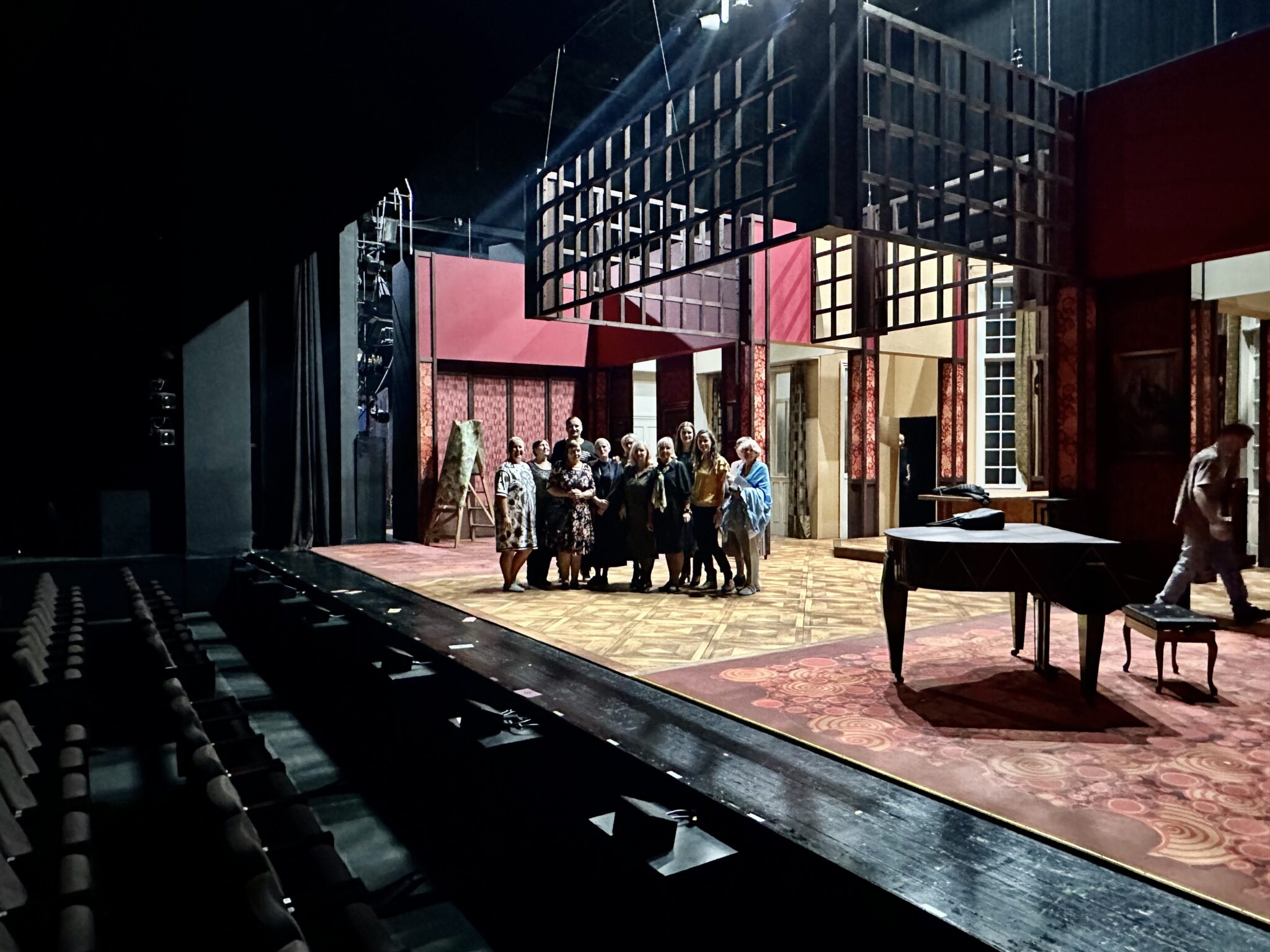 Pēc izrādes “Leopoldštate” tikāmies ar skolas absolventu, aktieri Andri Buli, kurš šajā (smagajā) izrādē bija Persija lomā – angļu žurnālists, kas izglāba maza ebreja puisēna dzīvību, apprecot ebrejieti, viņa mammu. ANDRIS mums ļāva iejusries :)) – uzkāpām uz Dailes teātra skatuves un ielūkojāmies skatuves aizkulisēs.