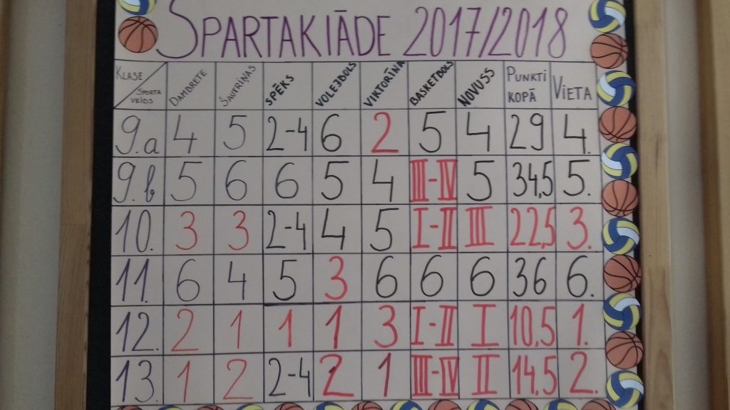 Pēc 3 gadu pārtraukuma 9.-13.klašu spartakiādē uzvarējusi 12.klase. Apsveicam!