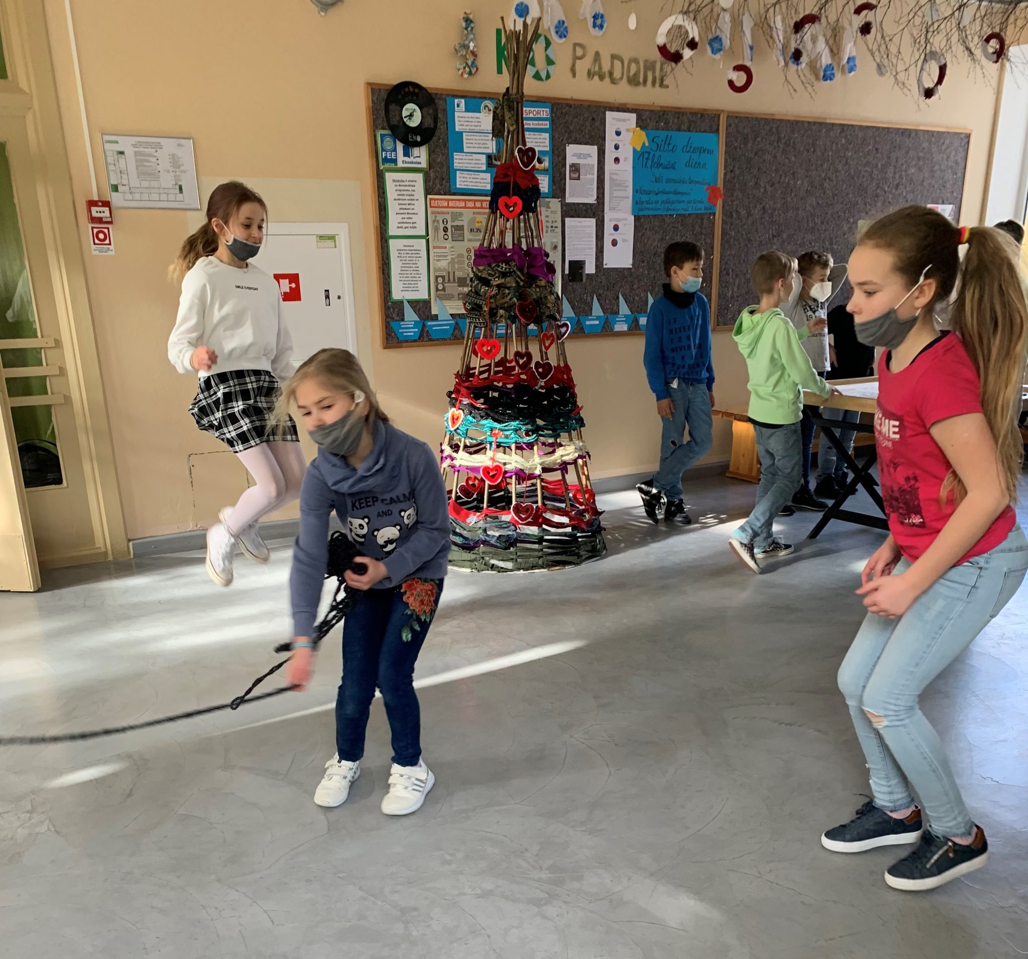 3. klases skolēni mājturības un tehnoloģiju stundās iemācījās tamborēt, ja notamborē garu, garu pīni, tad var spēlēt lēcienu spēli:)