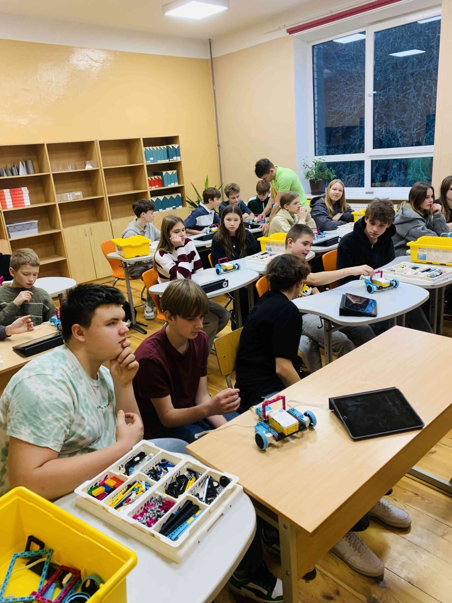 5., 6. klašu skolēni konstruēja i-robotu, tā veidojot izpratni par vienkāršiem inženiertehniskiem risinājumiem, kā uzkonstruēt no noteiktām detaļām sev vēlamo mehāniski darbojošos modeli.