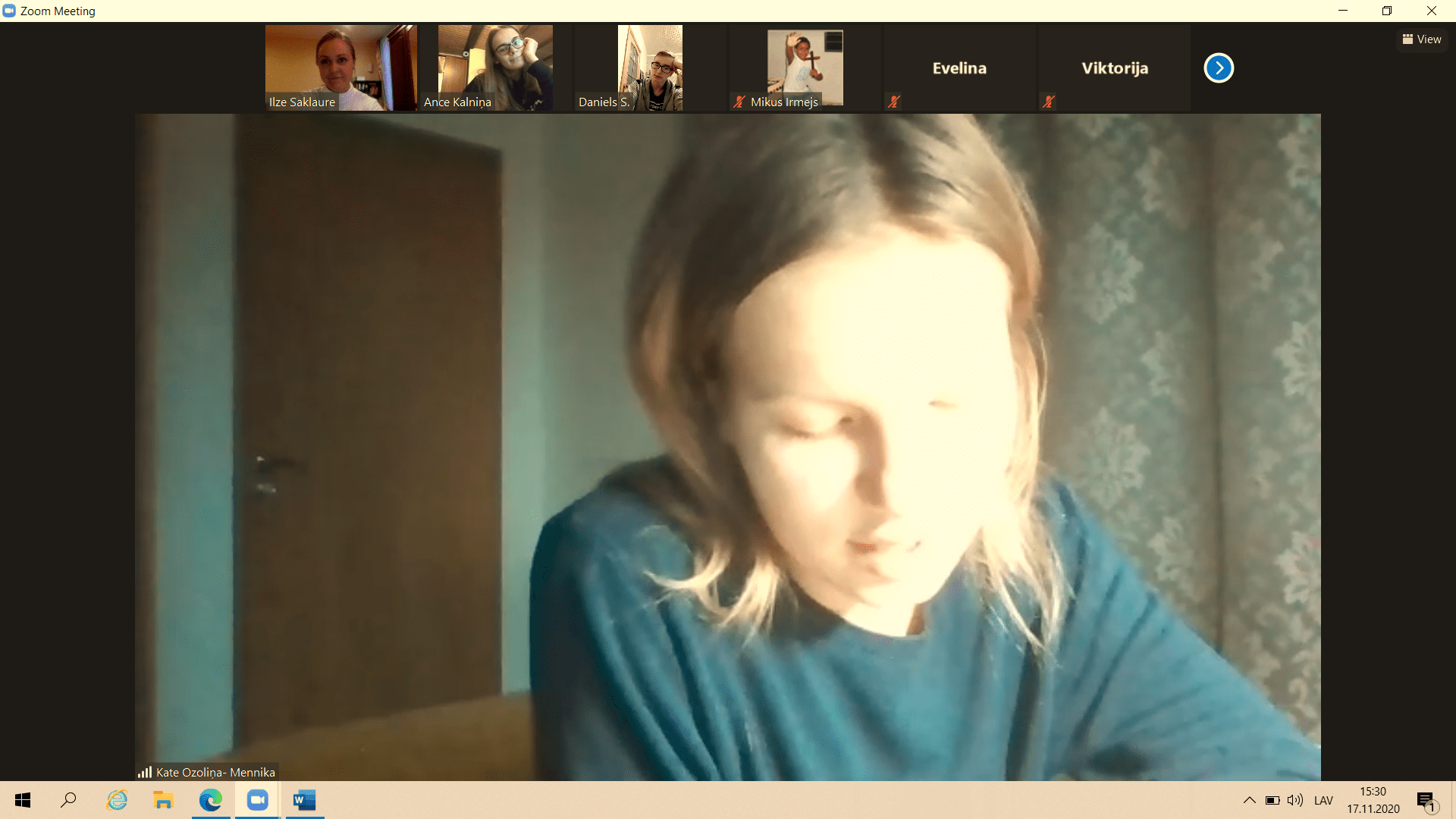 7.a klases stunda tika novadīta ZOOM. Katram skolēnam bija uzdevums izklāstīt, ar ko katram saistās Latvija.