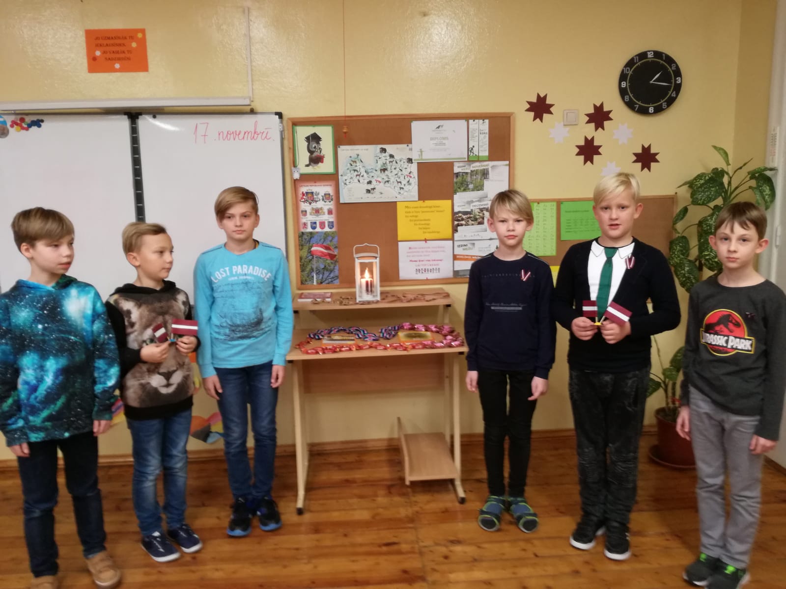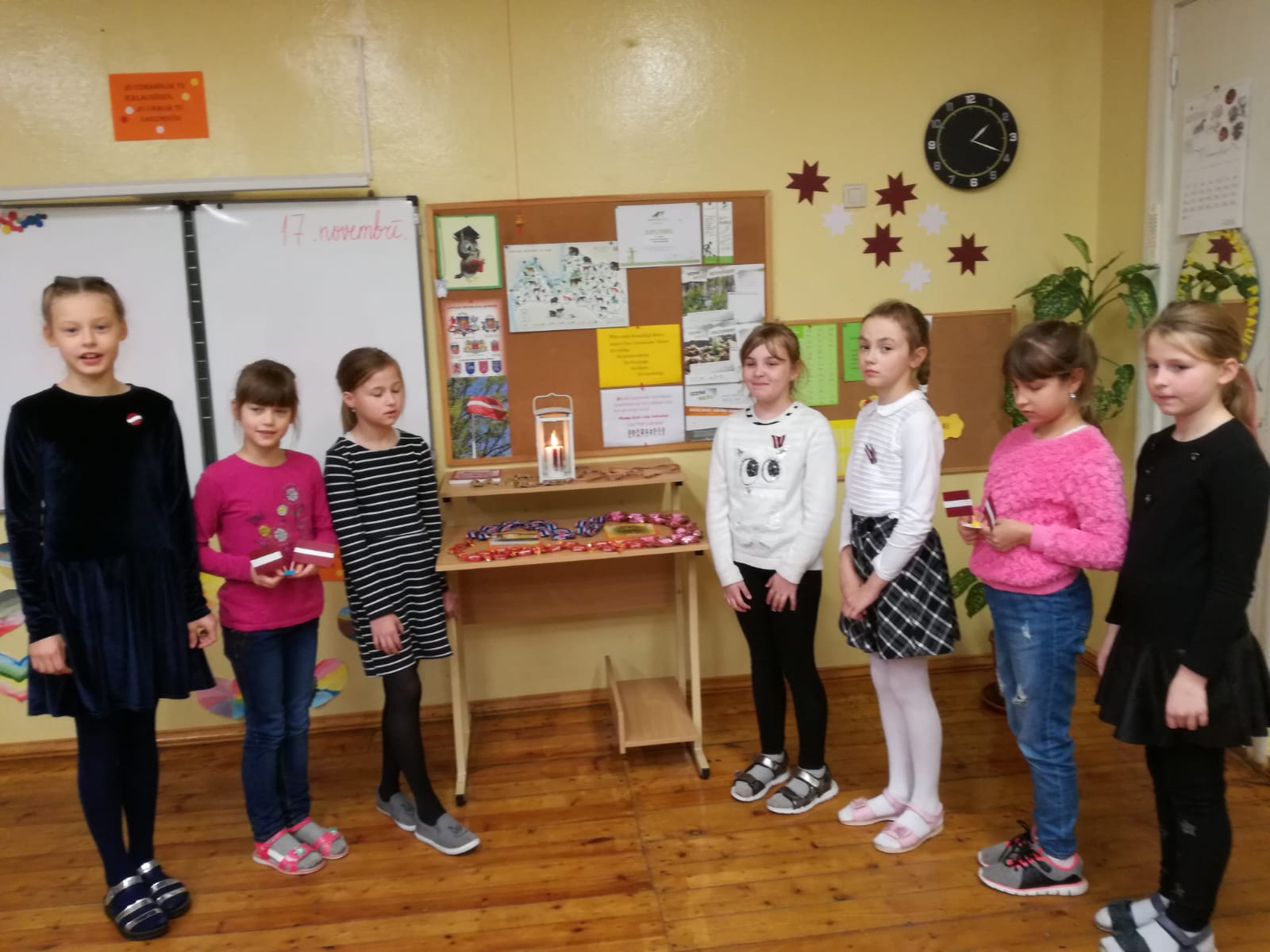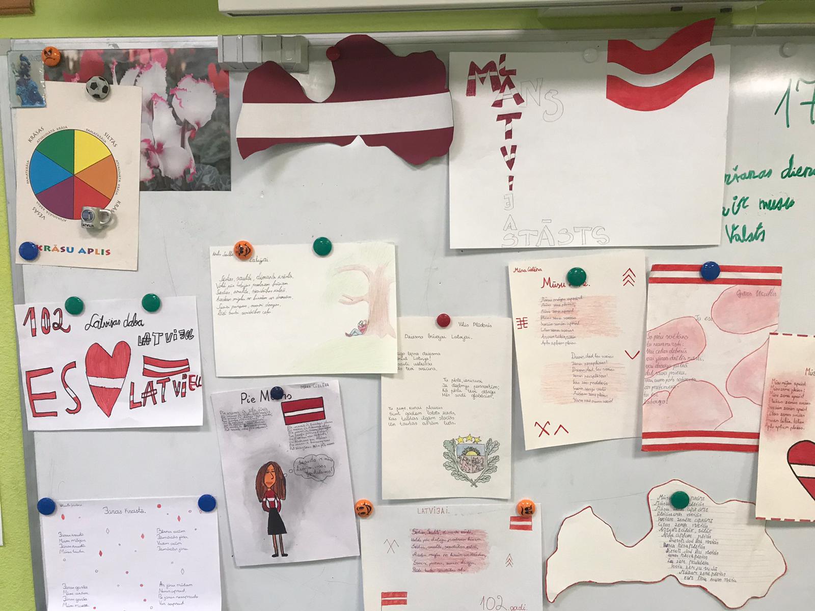 4.b klase pirmssvētku dienā, klasē runāja par to, kā Latvija kļuvusi par brīvu valsti, skatījās filmiņu par Latvijas proklamēšanu. Skolēni noformēja A3 lapas, uz kurām rakstīja dzejoli, kuru mācījās no galvas. Rezultātā tapa skaisti darbi ar latviešu dzejnieku dzejoļiem – par Latviju, Dzimteni. Visi rakstīja arī novēlējumus Latvijai!