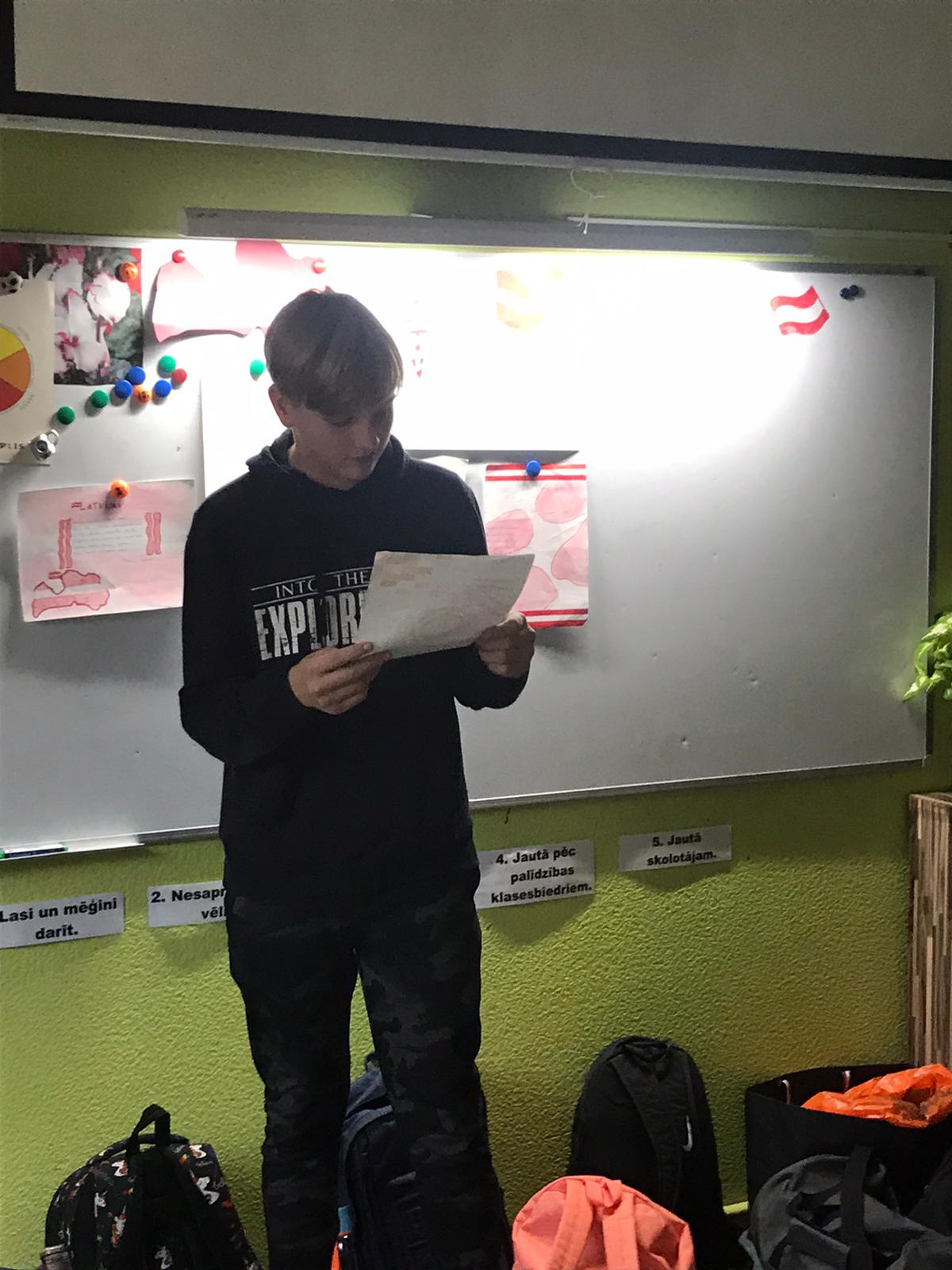 8.a klasei bija uzdevums atsūtīt savu mīļāko dzejoli par Latviju, savu novēlējumu Latvijai dzimšanas dienā.