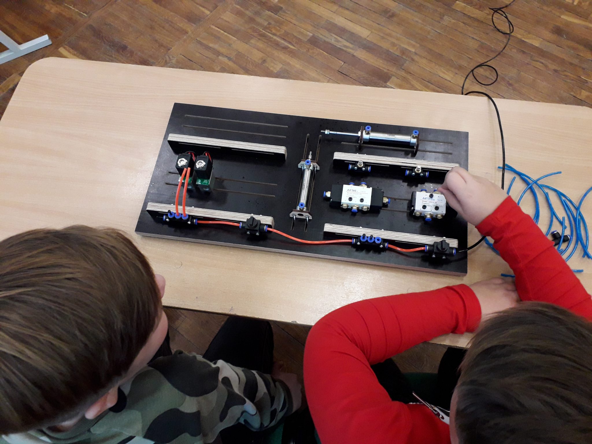 Mehatronika apvieno trīs nozares – mehāniku, elektroniku un datortehniku. Piektklasnieki pagaidām ar šo virzienu saskarās maz, tādēļ šodien viņiem bija lieliska iespēja iepazīties ar mehāniku un elektroniku.