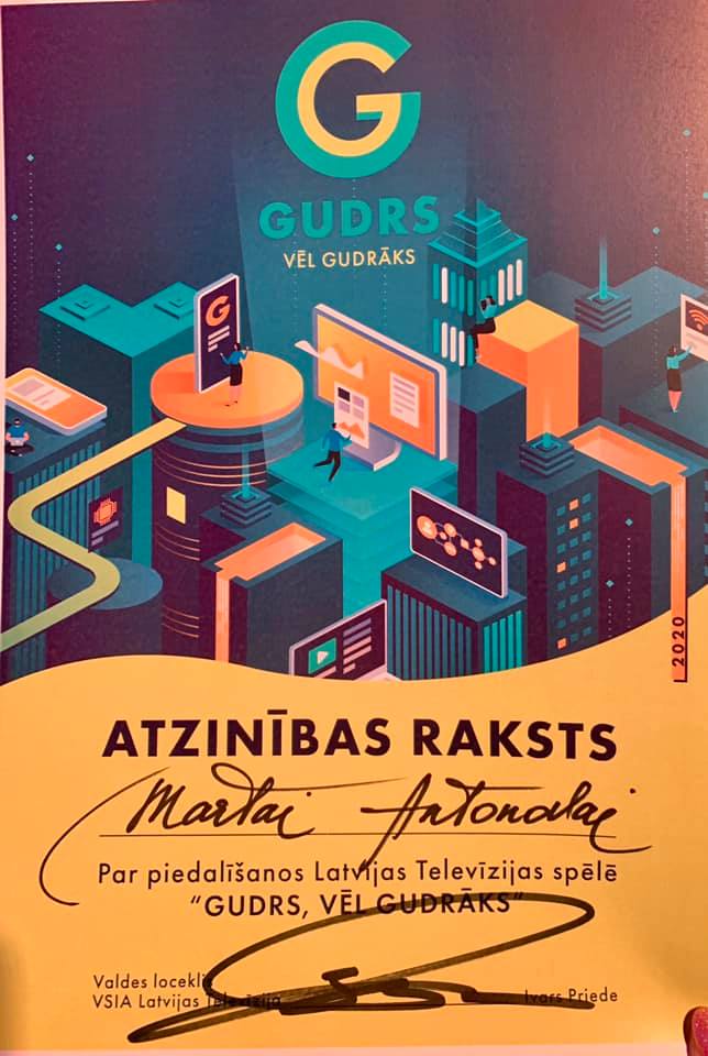 Jau pavisam drīz TV ekrānos varēsim vērot Salacgrīvas vidusskolas 12.klases erudīto jaunieti Martu Antonovu, kura veiksmīgi startēja TV spēlē “Gudrs, vēl gudrāks”. Priecājamies kopā ar Martu un aicinām visus pie TV ekrāniem 3.aprīlī. Paldies par foto – Ivetai Kupčai.