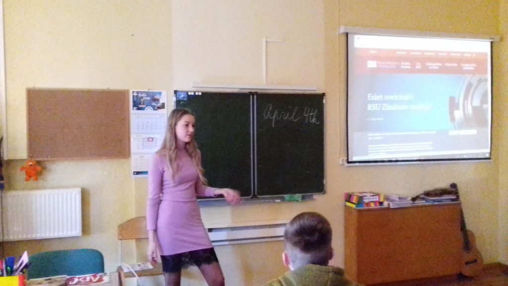 4.aprīlī 10. un 11.klašu skolēniem bija iespēja tikties ar absolventi Elīnu Runci, RSU 1.kursa studenti, savas augstskolas vēstnesi.