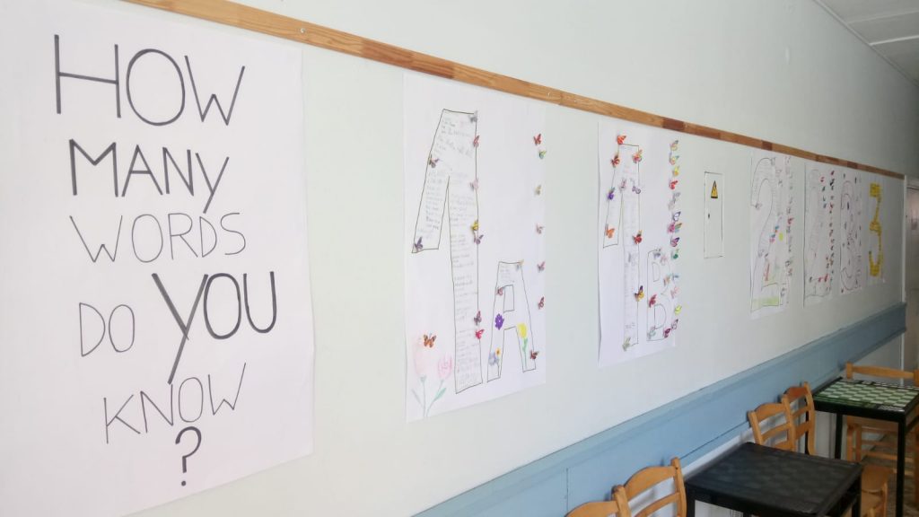 Šie plakāti ir kā mācību materiāls. Ejot cauri 3. stāva gaitenim var pārbaudīt sevi, cik daudz vārdiņi ir zināmi. Cik vārdiņus zini tu?