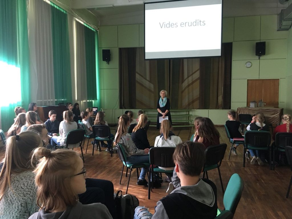 Lai veicinātu izpratni par videi draudzīgiem procesiem un videi draudzīgu dzīvesveidu, 8.b klases skolēni Sendija Ivanova, Ance Andersone un Niks Jakovickis, kuri ir arī ekopadomes locekļi, sagatavoja spēli “Vides erudīts” 5.-12. klasei.
