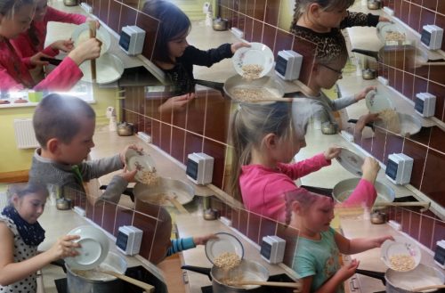 3.a klases skolēni jau iepazinās ar mācību materiālu, kuru piedāvā putras programma un vārīja savu mīļāko putru “Mmmm…mīlestības putra”. Katrs skolēns uz skolu atnesa sauju graudaugu pārslas, no kurām vārīta putra katram garšo vislabāk. Tad nu katrs bēra savas pārsla kopējā katlā un izdevās gardā “Mmmm…mīlestības putra”. Protams, ir savi mazi noslēpumi, kāpēc mūsu putra izdodas tik garšīga. Putru ēd ar augļiem, blenderētām svaigām ogām un augļiem, ievārījumu. Klāt piedzer svaigi lasītu piparmētra tēju. Savu recepti 3.a klases skolēni nosūtīja Vislatvijas Putras pavārgrāmatai.