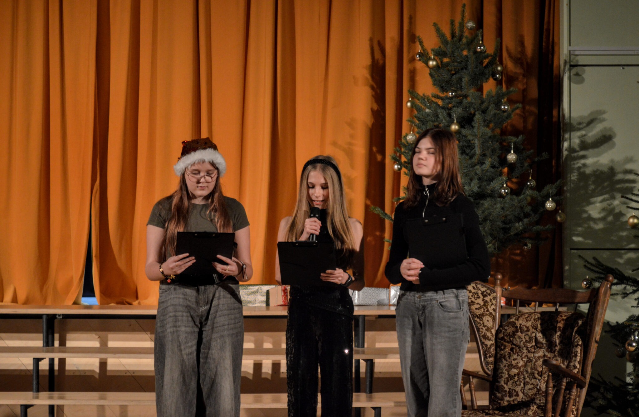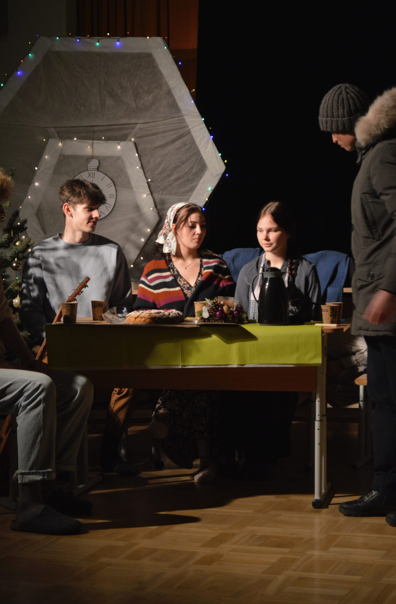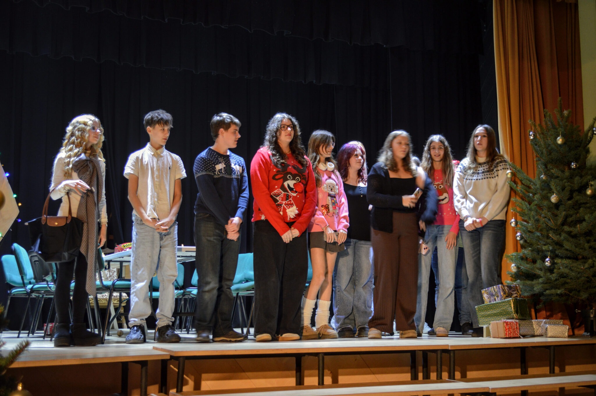 Kā pirmie uzstājās 10. klase, kas ļāva mums ieskatīties pavisam tālā pagātnē. Viņi mūs aizveda vistālāk atpakaļ laikā un atgādināja par pašu Ziemassvētku būtību – par Jēzus Kristus piedzimšanu, notikumu, kura dēļ mēs vispār svinam Ziemassvētkus.