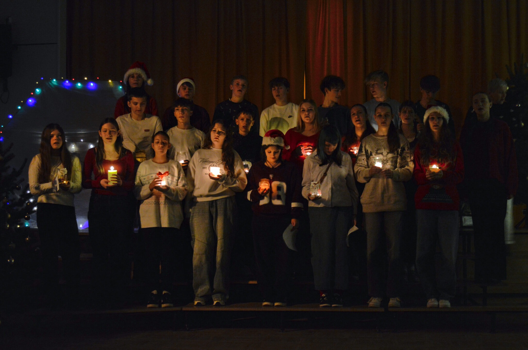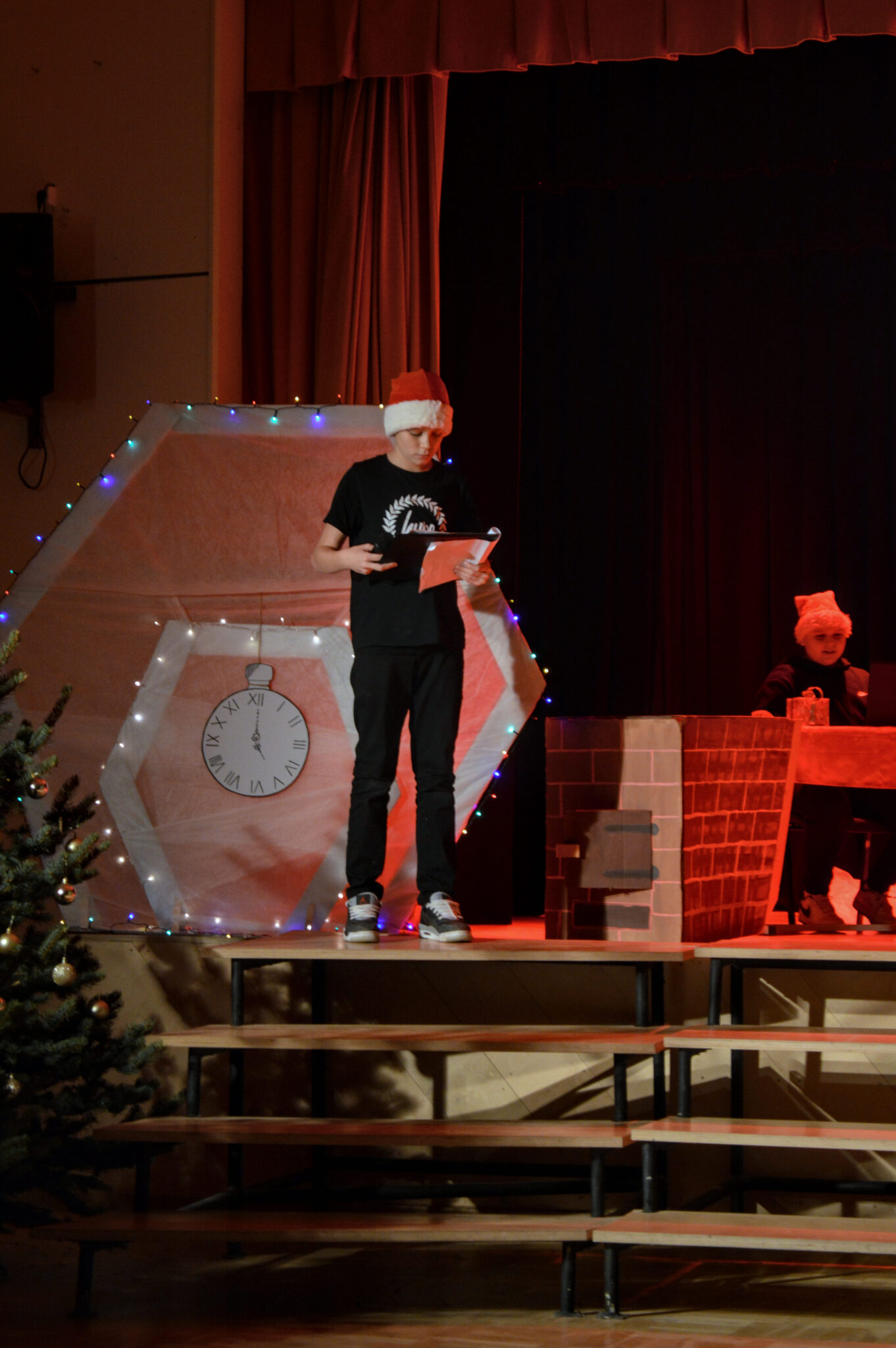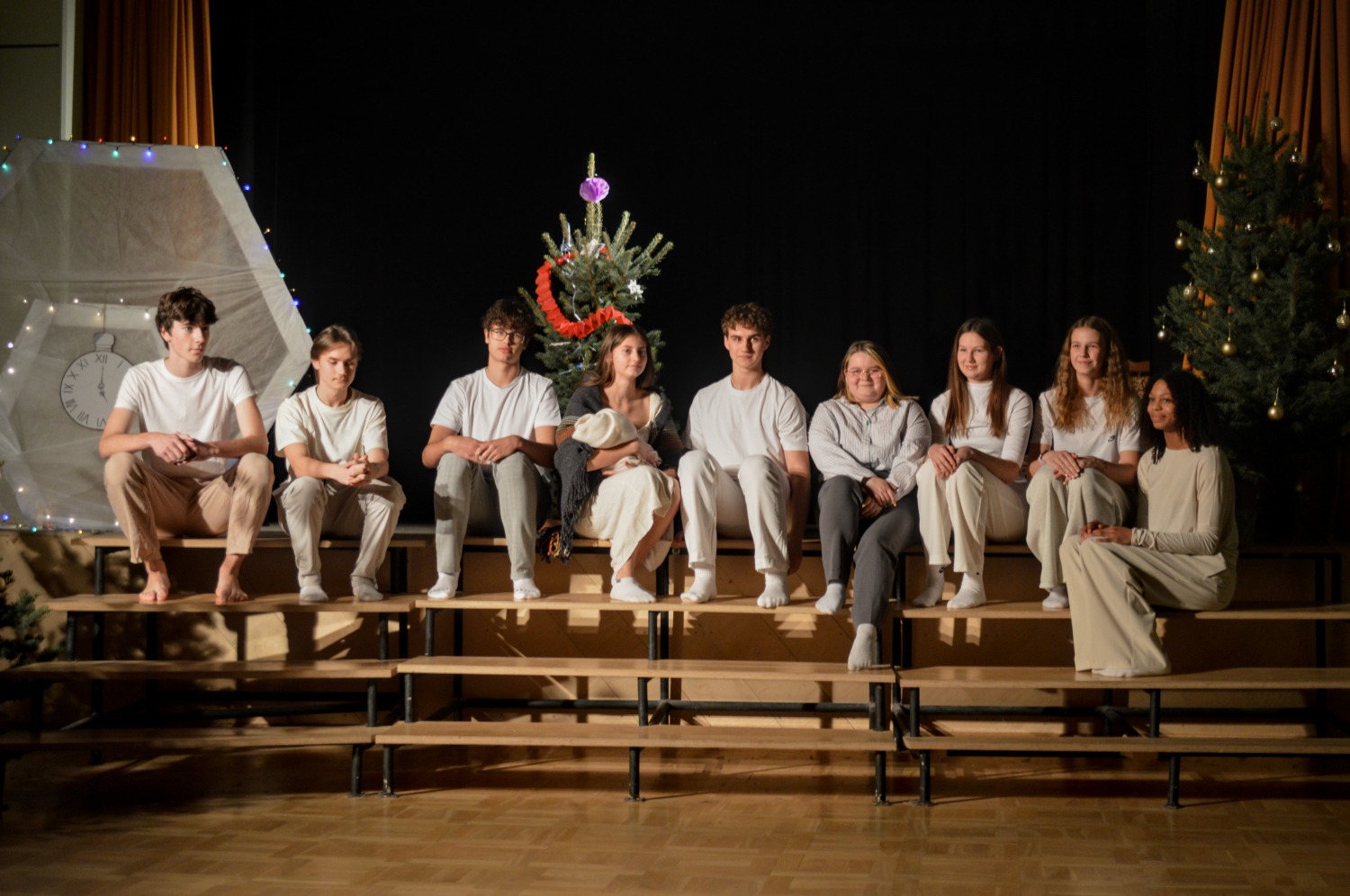 Kā pirmie uzstājās 10. klase, kas ļāva mums ieskatīties pavisam tālā pagātnē. Viņi mūs aizveda vistālāk atpakaļ laikā un atgādināja par pašu Ziemassvētku būtību – par Jēzus Kristus piedzimšanu, notikumu, kura dēļ mēs vispār svinam Ziemassvētkus.