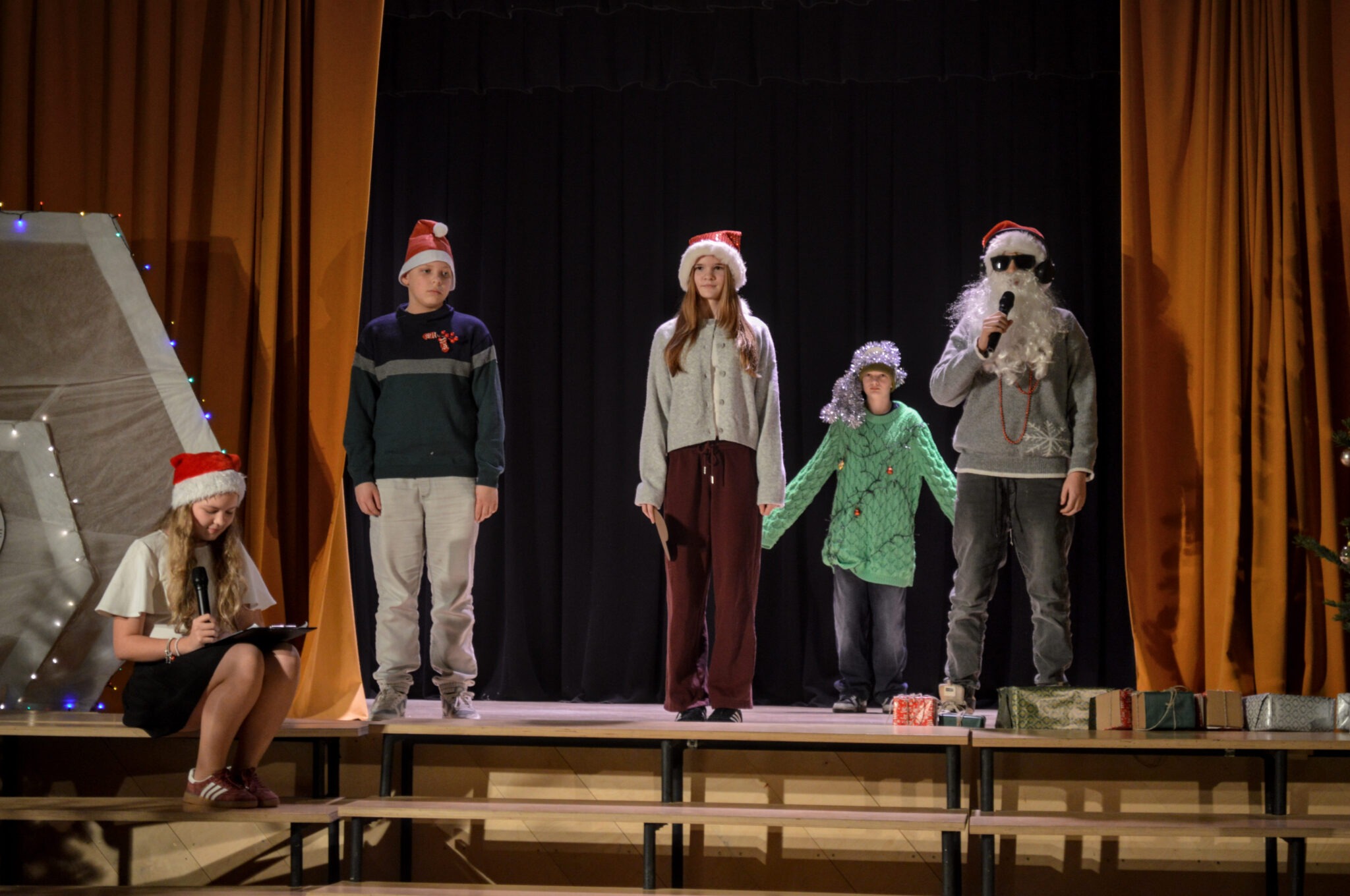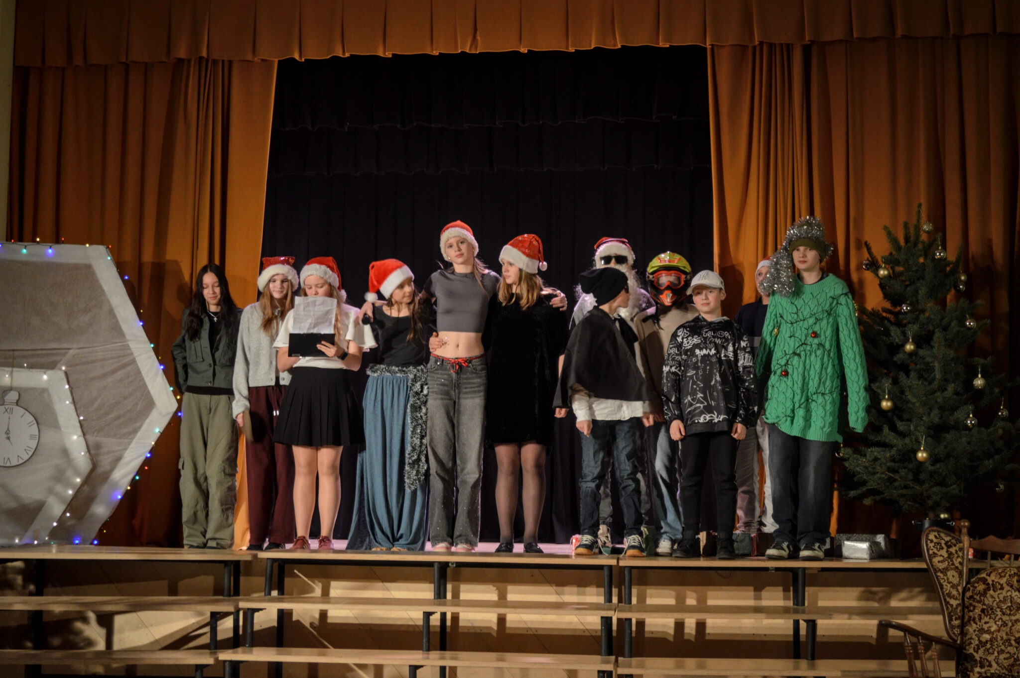 7.–9. klašu skolēni, parādot mūsdienu Ziemassvētkus ar visām to krāsām, izaicinājumiem un ikdienas paradumiem.