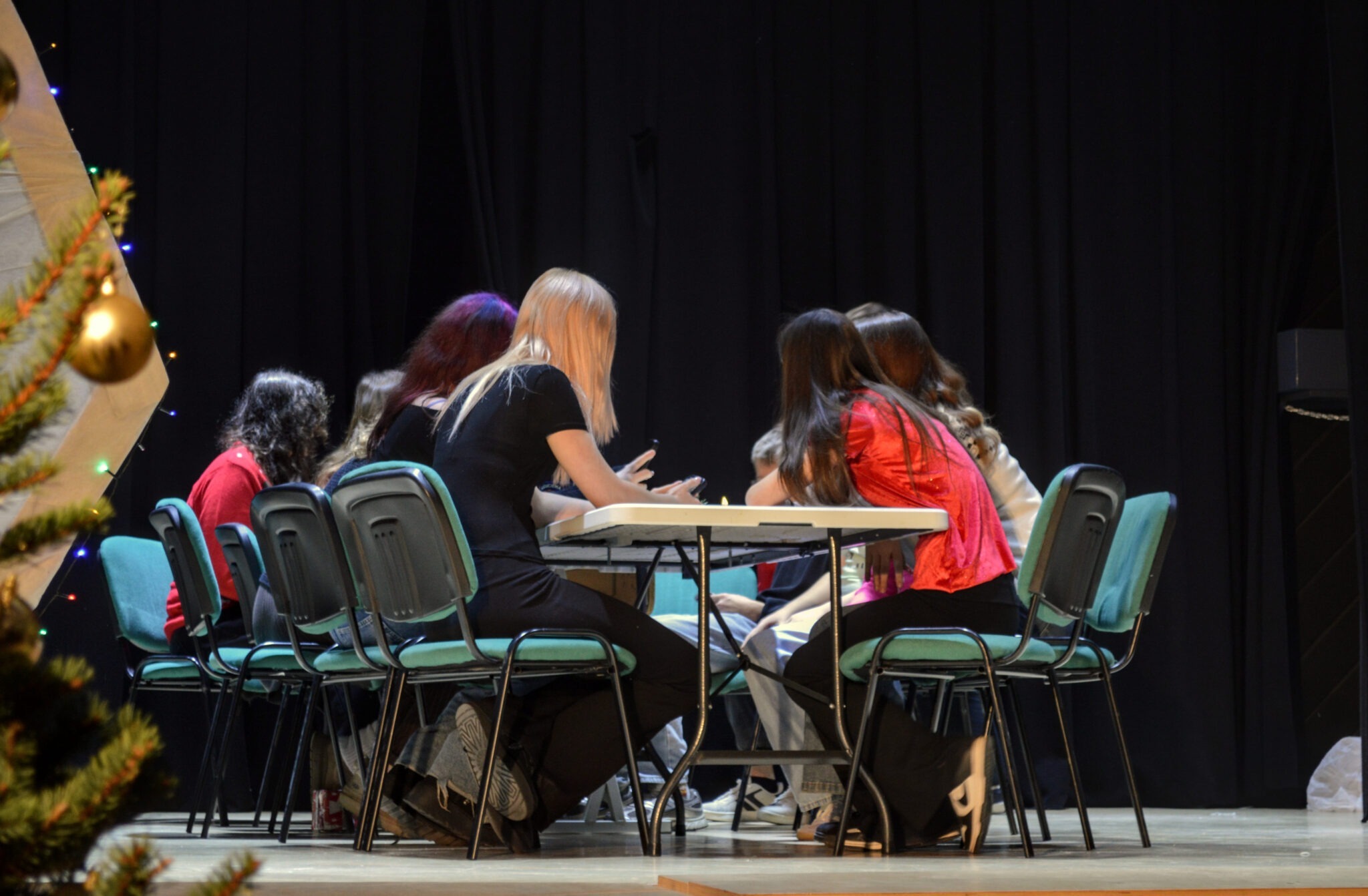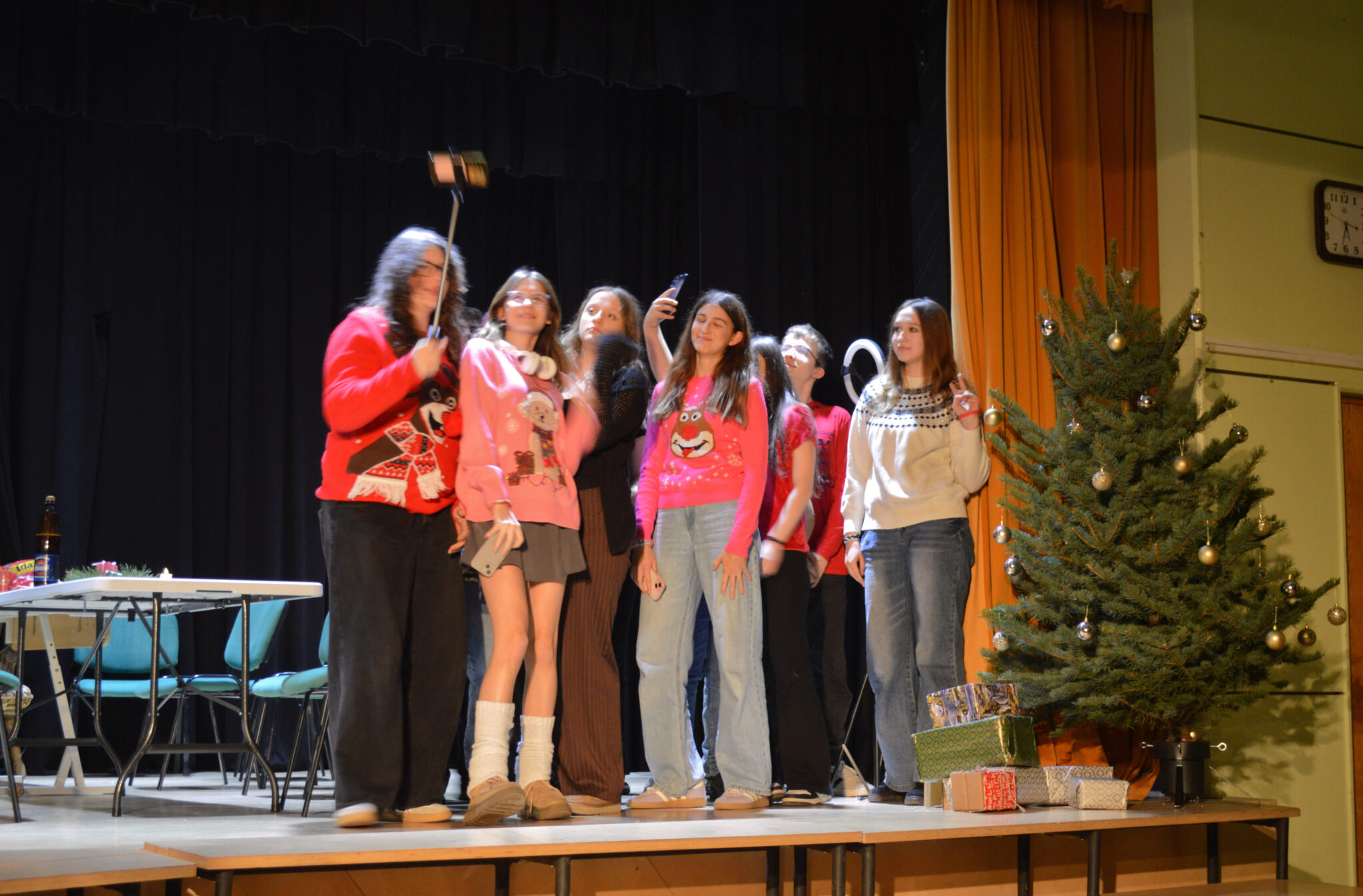 7.b klases priekšnesums pasākumā “Laikamašīna uz Ziemassvētkiem” atgādināja par mūsdienu aktuālu problēmu – pārmērīgu telefonu un ekrānu lietošanu ikdienā, īpaši laikā, kad esam kopā ar ģimeni. Priekšnesumā tika uzsvērts, ka, lai arī tehnoloģijas ir kļuvušas par neatņemamu mūsu dzīves sastāvdaļu, tās nereti attālina cilvēkus vienu no otra, pat atrodoties vienā telpā.