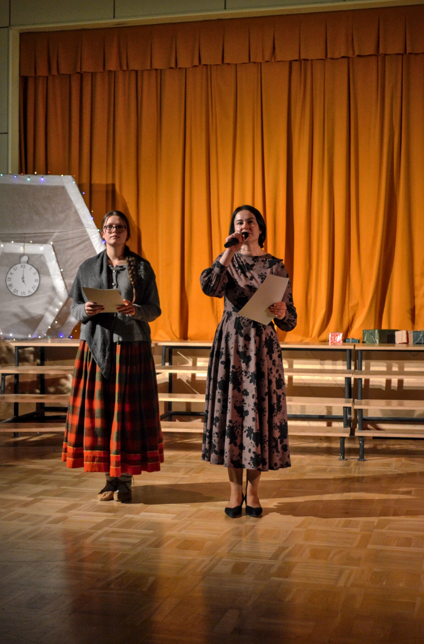 Ziemassvētki ir svētki, kas vieno paaudzes, glabā atmiņas un rosina sapņus, un tieši tāpēc ļāvām vaļu iztēlei un sirdssiltumam. Laikamašīna devās ceļā – tā aizveda mūs pagātnē, ļāva ielūkoties tagadnē un pavēra durvis uz nākotnes Ziemassvētkiem. 5.-12. klases skolēni bija sagatavojuši nelielu ieskatu, kā Ziemassvētkus svinēja, svin un varētu svinēt dažādos laikos.